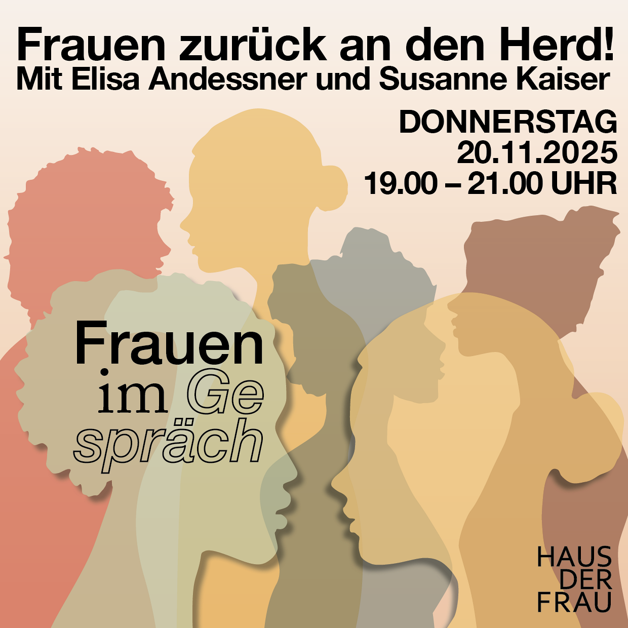 Frauen im Gespräch: Frauen zurück an den Herd mit Elisa Andessner und Susanne Kaiser 20.11.2025, 19:00-21:00 Uhr mehr: Frauen im Gespräch: Frauen zurück an den Herd