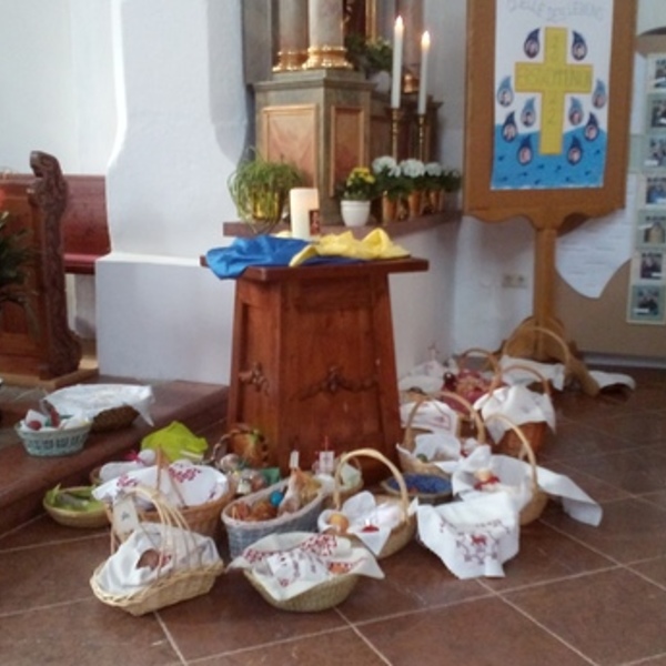 Herr Pfarrer Sterner segnete die vielen mitgebrachten Körbe mit Speisen.