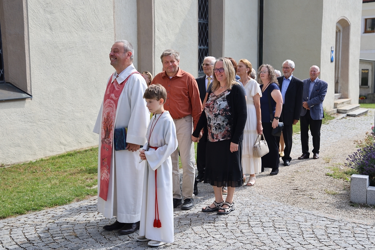 Wunderschöne musikalische Untermalung vom Chor Ad hoc und ein Überraschungs-Ständchen der Humenberger-Kinder machten den Gottesdienst der Ehejubilare zu einem unvergesslichen Fest. Die Humenbergers selbst und ein anderes Paar feierten auch ein rundes Fest, ließen es sich aber nicht nehmen, im Chor mitzusingen bzw. zu dirigieren. Ein Zufall war auch im Spiel: Drei Jubelpaare hatten am selben Tag vor 25 Jahren geheiratet.