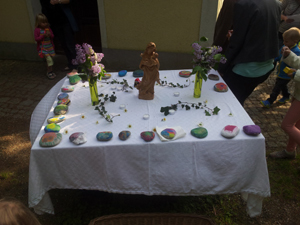Am 16. Mai feierten wir die Kindermaiandacht am Penzenstein. Es waren über 30 Kinder dabei. Wir haben drei Stationen vorbereitet. Bei der ersten Station ging es um Mutter Maria.