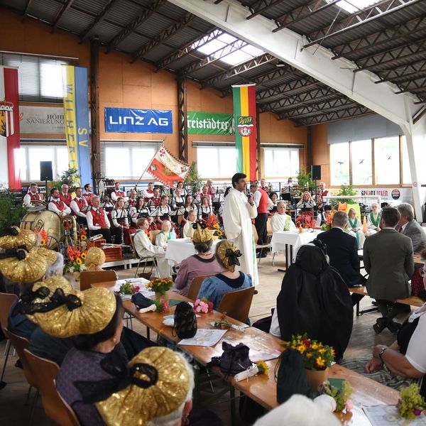 „150 Jahre MV Schönering“ und „75 Jahre SV Wilhering, Sektion Fußball“, diese beiden Jubiläen waren nicht nur Anlass für das große Fest am 2. und 3. Juli, sondern auch für einen Festgottesdienst in der Stockschützenhalle Schönering.