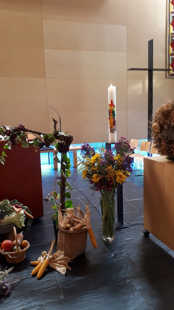 Rund um die wundervoll gestaltete Erntekrone feierten wir mit der Musikkapelle Sulzbach unser Erntedankfest.