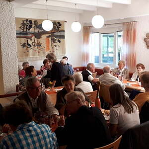 Nach dem Festgottesdienst wurden im Buffet der Pfarre noch Weißwürste mit Laugenbrezen zum Mittagstisch gereicht.