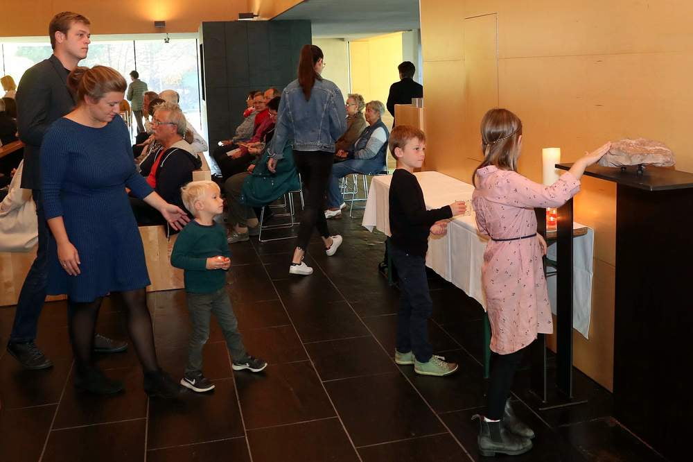 Der Gottesdienst wurde vom Kirchenchor musikalisch umrahmt. Begleitet vom Sonnengesang war die feierliche Lichterprozession zum Stein aus Assisi, dem Grundstein der Kirche. Durch Handauflegung bekräftigten wir die innige Verbindung zum Namenspatron unserer Heimatpfarre.
