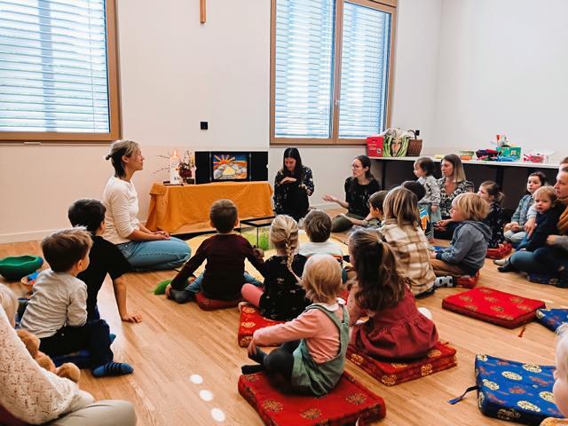 Am Sonntag, 6. April fand in unseren neuen Pfarrräumlichkeiten ein besonderer Kinderwortgottesdienst statt – passend zur Osterzeit unter dem Thema: „Von der Raupe zum Schmetterling“.