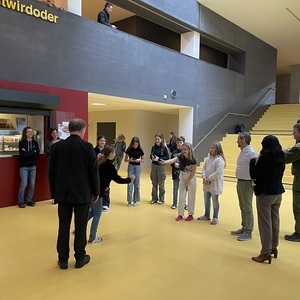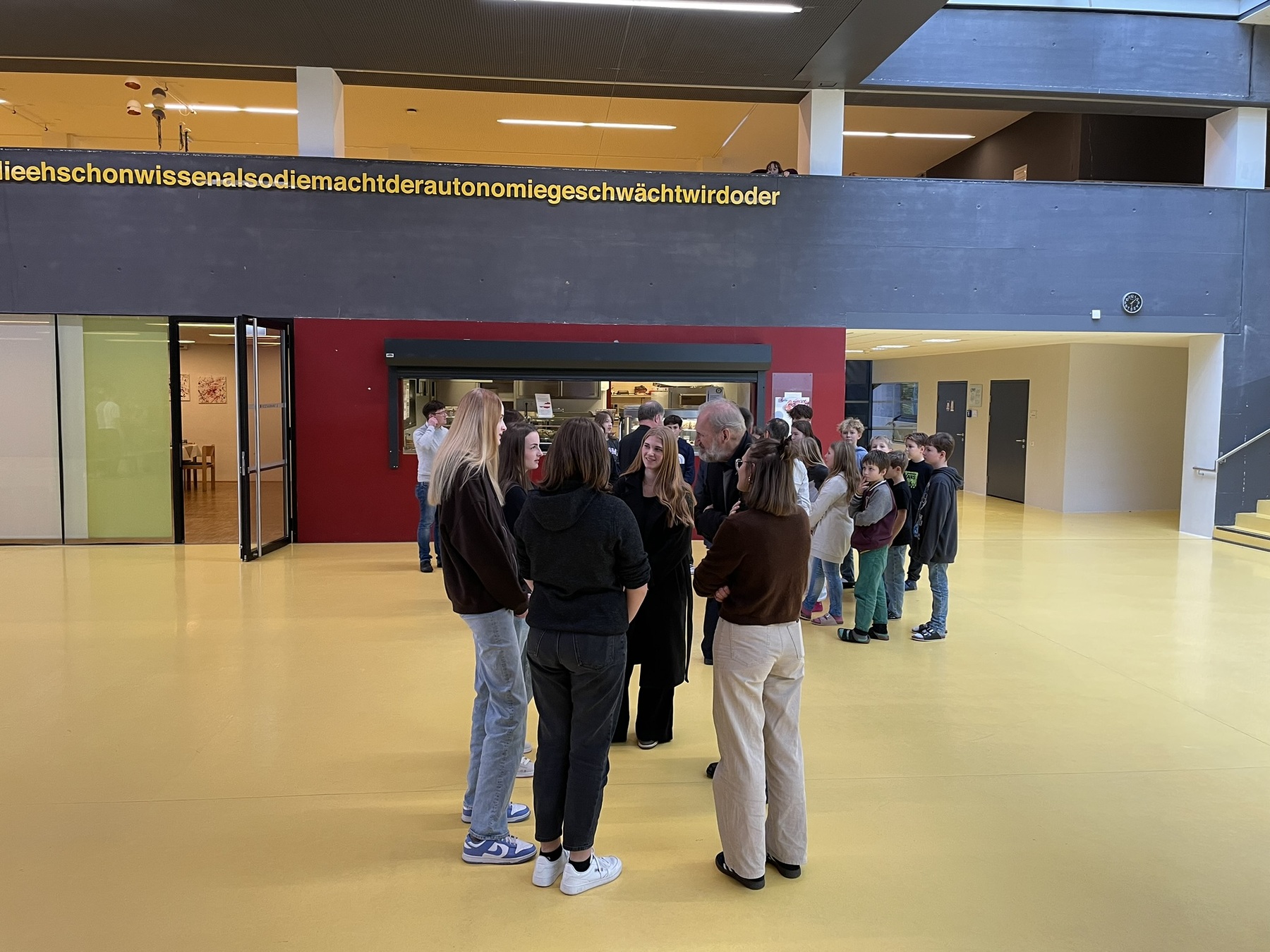 Die Schülerinnen und Schüler nutzen begeistert die Möglichkeit zum Austausch mit den Visitatoren und stellten ihnen auch manche kritische Frage.